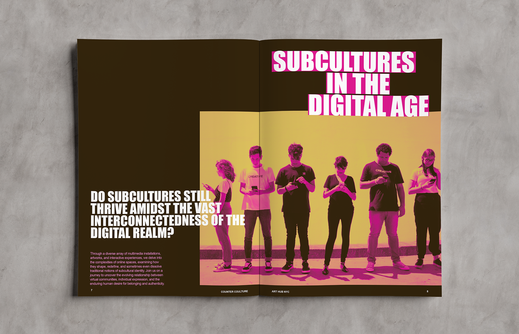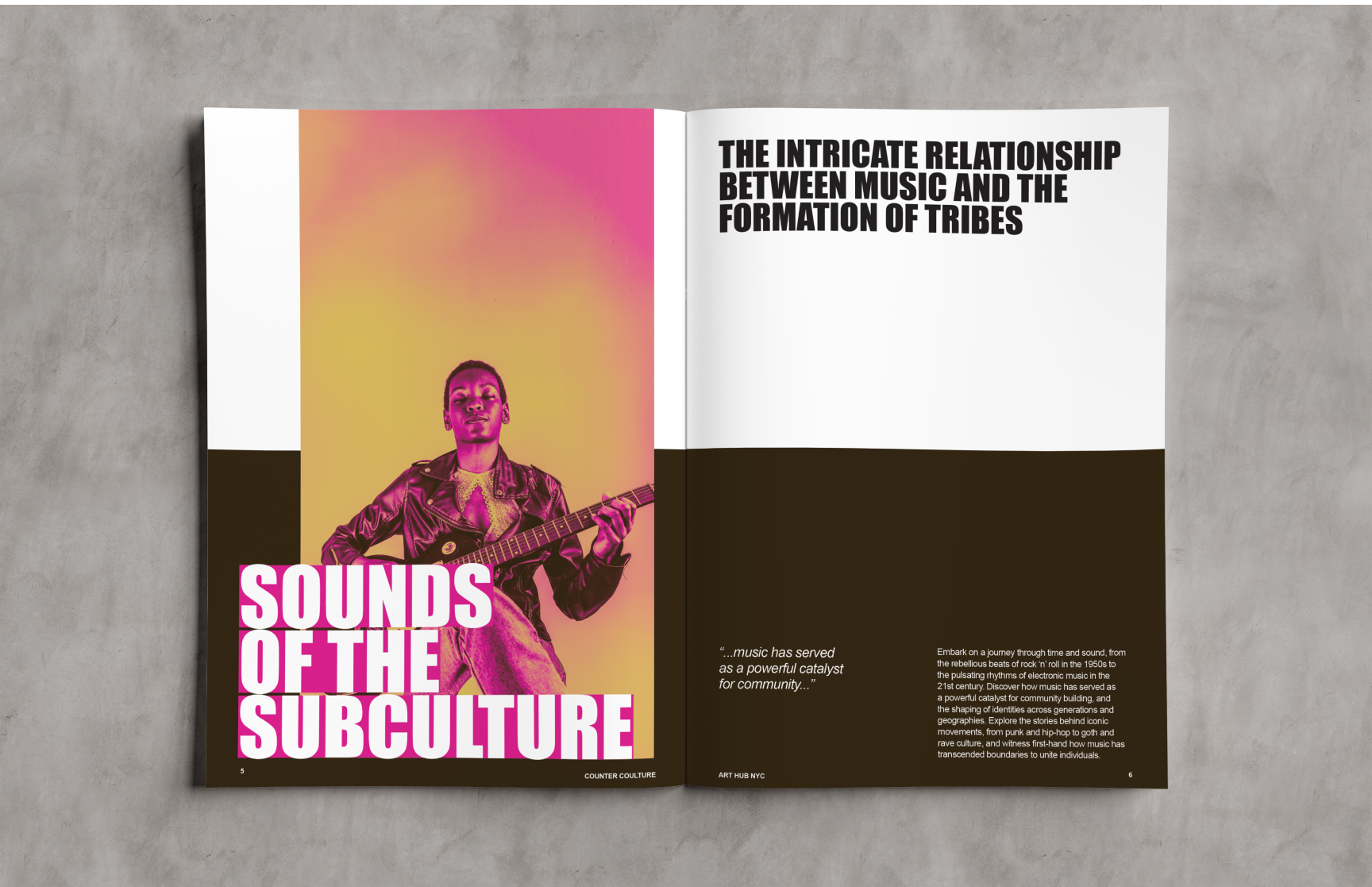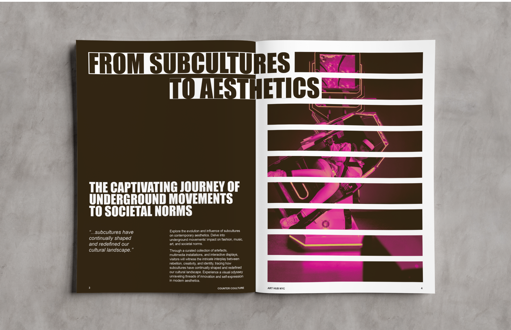 Concept: A high-energy brochure rooted in collective imagination. Presenting innovation as a shared act where ideas, styles, and voices are constantly exchanged. It frames “Counter Culture” as a community-driven dialogue, celebrating subcultures as sparks that challenge and reshape mainstream culture.
